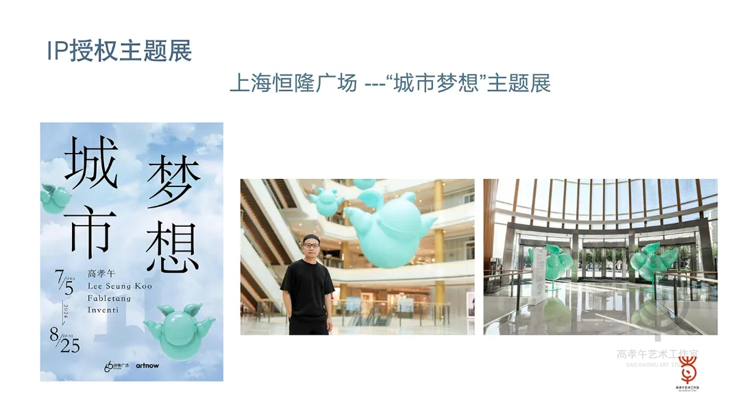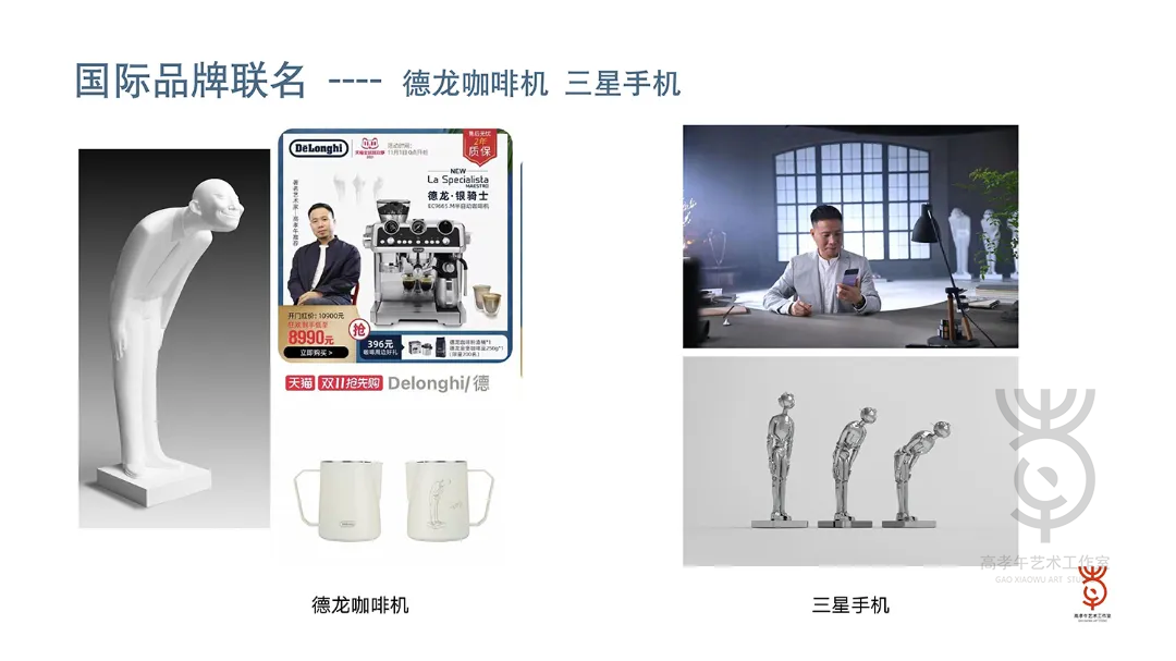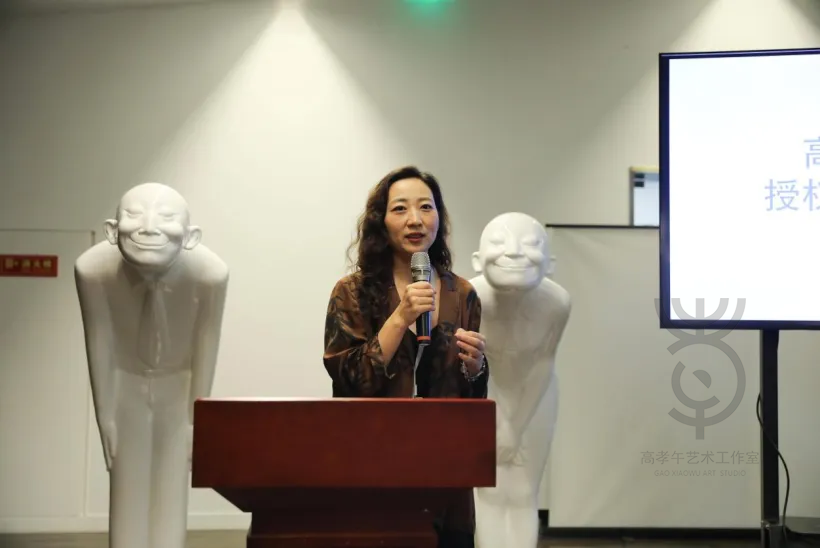 高孝午工作室主管王慧,分享了高孝午艺术IP正版授权情况和合作案例。如《标准时代》系列与德龙咖啡机、三星手机合作案例;《城市梦想》系列与上海恒隆广场IP授权和主题展案例等;同时代表工作室在发布会上宣布,与北京798文科联合推出的联名艺术衍生品“798artworks x 高孝午”的相关情况,这是全球首家高孝午艺术IP合作商店。